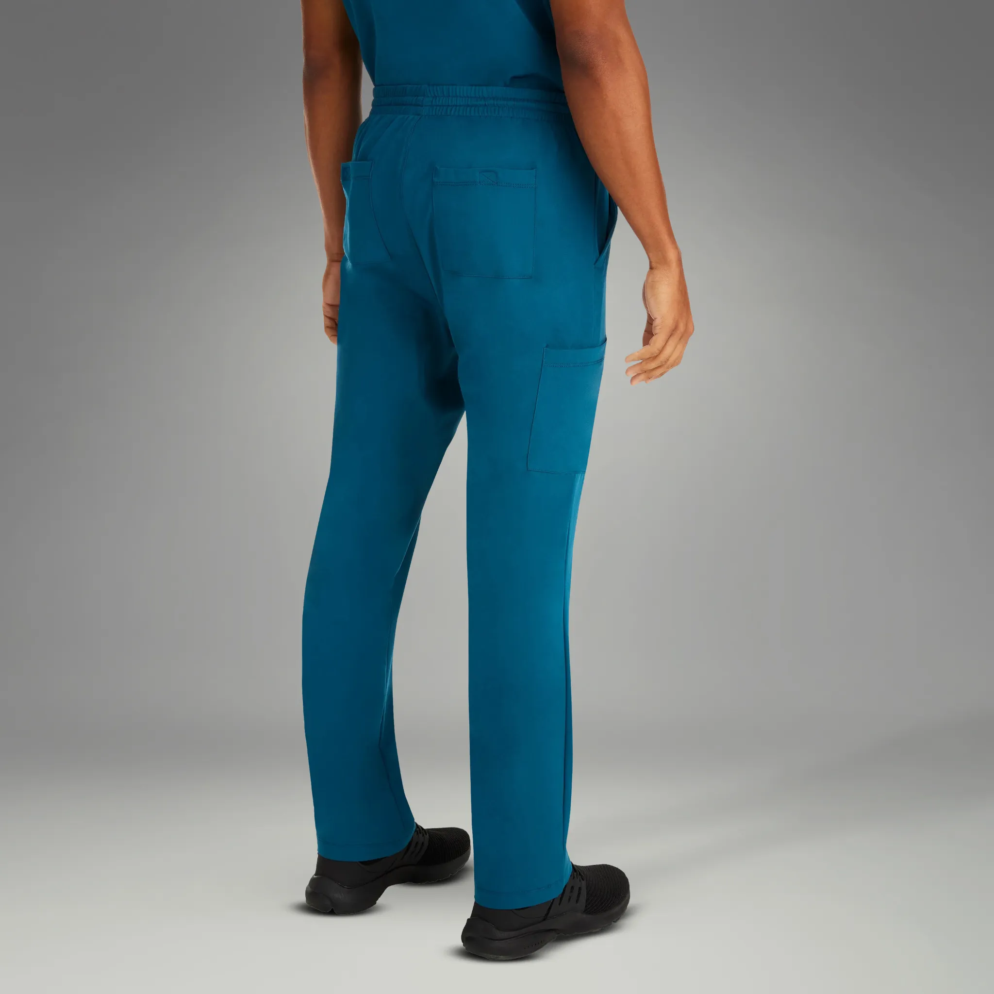 Mens Ryan Cargo Scrub Pants feature a natural rise with straight legs, full elastic waistband with inner drawstring Also has a functional zipper fly with button closure. For storage it has two front slash pockets, one cargo pocket on the right with inner contrast pocket, and two back pockets with Velcro closure Great group item in a sophisticated basic style.
